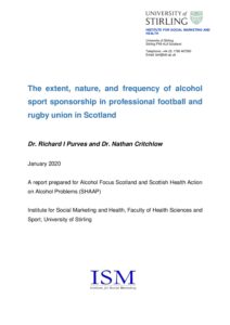 Reports Report Exploring the delivery of alcohol-related health advice in dental practice settings: A scoping review December 2024 Featured Report Supporter views on alcohol sponsorship in Scottish football June 2024 Report Review of Alcohol Services in Scotland’s acute hospitals February 2024 Report A Qualitative Study of the Views of Alcohol Frequent Attenders at Royal Alexandra Hospital, Renfrewshire July 2023 Report Getting in the spirit? Alcohol and the Scottish economy February 2023 Report Scottish Supporters Survey Results February 2023 Report SWF Player survey November 2022 Report Alcohol sponsorship of football: Examining the nature of sponsorship relations for professional football teams across countries... November 2022 Report NCD Alliance Scotland- Scotland’s Health: Preventing Harm Through Action September 2022 Report What are LGBTQ+ people’s experiences of alcohol services in Scotland? A qualitative study of service users... March 2022 Report Alcohol management in Deep End practices March 2022 Report ‘Alcohol marketing during the 2020 Six Nations Championship’ September 2021 Report Non-Communicable Disease Prevention: Priorities for 2021/22 September 2021 Report Exploring the factors that influence harmful alcohol use through the refugee journey: a qualitative study November 2020 Report Rural Matters – Understanding alcohol use in rural Scotland: Findings from a qualitative research study September 2020 Report ISMH Stirling University background research on alcohol sponsorship in sport March 2020 Report Time to blow the whistle on alcohol sports sponsorship March 2020 Report ‘Stand up and tell me your story’ – SHAAP report on lived experience February 2020