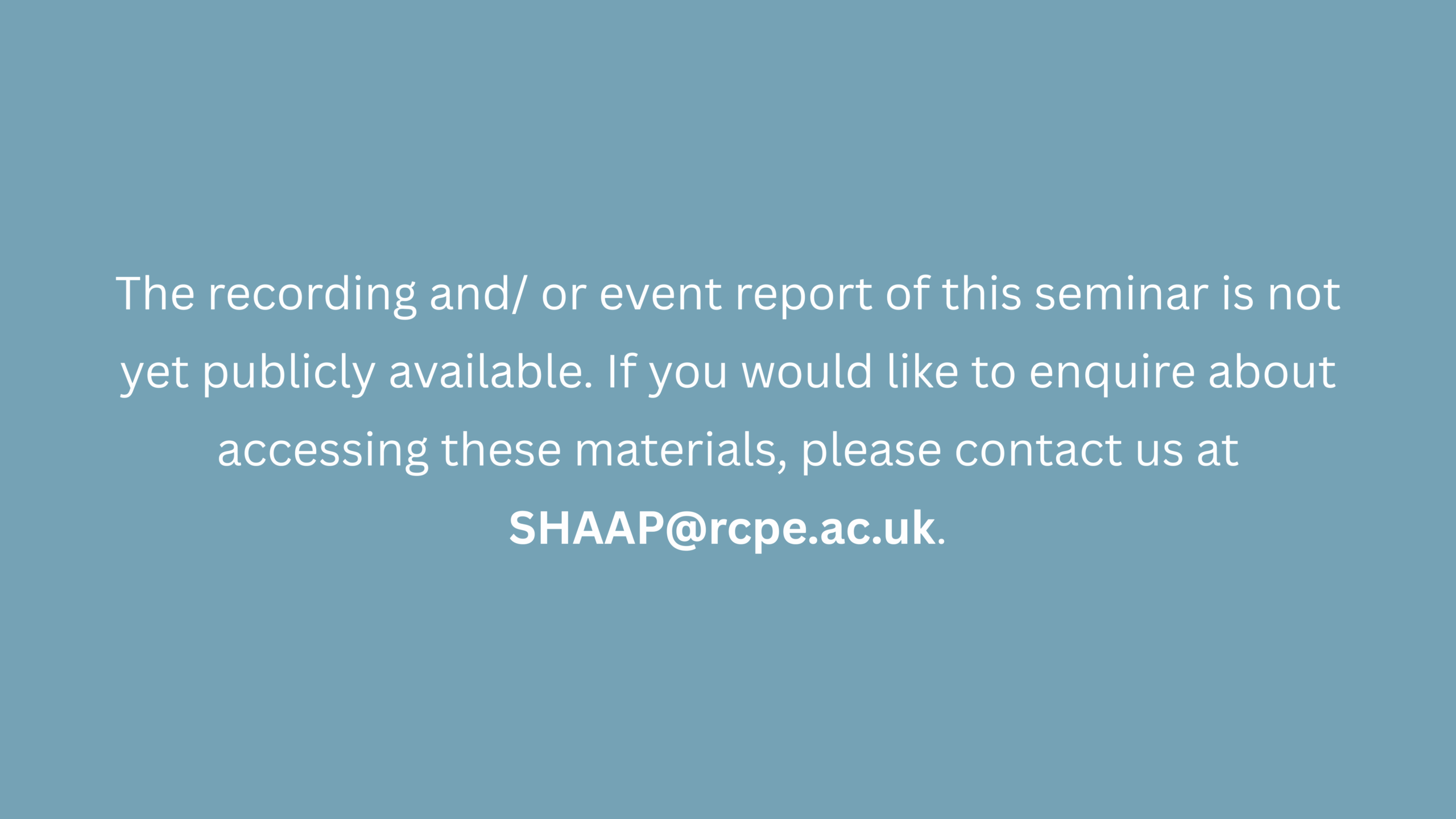 As this is ongoing academic work, the recording and/ or event report of this seminar is not publicly available. If you would like to enquire about accessing these materials, please contact us at SHAAP@rcpe.ac.uk.