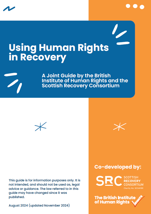 Feedback from course participants highlighted the need for a concise, easy to read, guide that took the most pertinent aspects of human rights for people in recovery and brought them together in one place. Therefore, again in partnership with colleagues at BIHR we produced our Using Human Rights in Recovery – A Guide (downloadable here https://scottishrecoveryconsortium.org/resources )